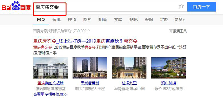 方式一:10月14日至20日,在百度搜索“重慶房交會”、“重慶秋季房交會”等關(guān)鍵詞,然后點擊鏈接,進入2019重慶百度秋季房交會主頁;
