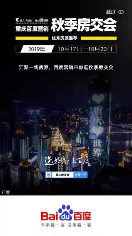 作為購房者和房企溝通的橋梁,重慶百度秋季房交會為了讓更多購房者快速找到夢想好房,此次投入了海量宣傳流量,通過百度搜索、百度信息流、百度開屏、聚屏助推全景品牌展示,在億級流量中大曝光,打造一場完美的購房盛宴。