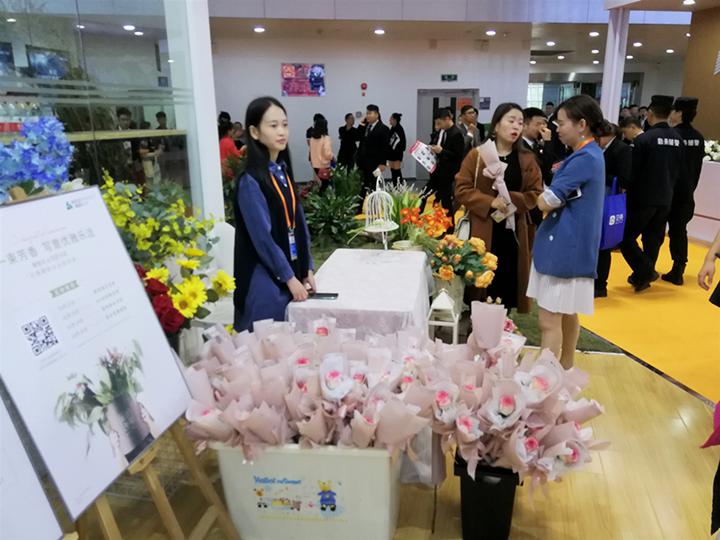 和它的名字一樣,雅居樂(lè)的展廳現(xiàn)場(chǎng)也充分體現(xiàn)了一個(gè)“雅”字。門口一邊是一片青蔥的綠植裝飾,另一邊則是為顧客準(zhǔn)備的鮮花手禮。整個(gè)展廳里到處都是鮮花和綠植,完美體現(xiàn)了雅居樂(lè)“一生樂(lè)活”的理念。他們這種貼近自然的展廳布局似乎很有效,在小編抵達(dá)現(xiàn)場(chǎng)時(shí),這里已經(jīng)聚集了一大批看房的顧客,全都圍在雅居樂(lè)主推項(xiàng)目“富春山居”的展臺(tái)前,仔細(xì)地聽(tīng)著工作人員的講解。作為雅居樂(lè)的主打項(xiàng)目,富春山居在此次秋交會(huì)上也有不小的優(yōu)惠,小高層額外96折,洋房額外97折,裝修小高層額外98折。