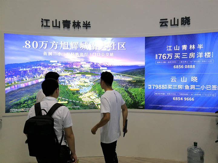 走進(jìn)南坪國(guó)際會(huì)展中心的入口,迎面而來(lái)的就是一樓展廳,這里主要展示的是二手房中介機(jī)構(gòu)、長(zhǎng)租公寓品牌、裝飾建材。如果你對(duì)這種大雜燴式的看房形式不感興趣,那么就跟隨小編的腳步直奔四樓展廳,這里匯聚了各大品牌房企,融創(chuàng)、龍湖、萬(wàn)科、金科、恒大、保利、華潤(rùn)、旭輝、香港置地、碧桂園、華宇等2019年上半年重慶主城區(qū)商品房銷售TOP20品牌開(kāi)發(fā)企業(yè)都悉數(shù)參展。