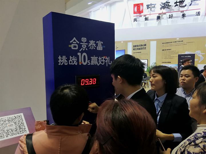 前來(lái)合景泰富展廳看房的人也不少,畢竟他們這次推出的幾個(gè)項(xiàng)目不管從地理位置還是價(jià)格上來(lái)說(shuō)都相當(dāng)不錯(cuò)。主推洋房的映月臺(tái)在秋交會(huì)每天都準(zhǔn)備了一套特價(jià)房,先到先得,而同樣位于兩江新區(qū)水土高新生態(tài)城附近的璟月臺(tái)更是每天有五套特價(jià)房的優(yōu)惠。展廳門口還有一臺(tái)有趣的抽獎(jiǎng)器,如果正好摁到10秒整,就能獲得合景泰富集團(tuán)送出的神秘大獎(jiǎng)。