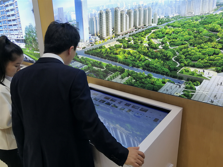 如果只用一個(gè)詞來(lái)形容中國(guó)摩,那應(yīng)該就是“大氣磅礴”了。走進(jìn)中國(guó)摩展廳,小編立馬被中間人群簇?fù)淼纳潮P模型吸引了注意力,“文旅大城”、“價(jià)值高地”等字眼深深地印入了小編的心中。另外,中國(guó)摩展廳還提供了少見(jiàn)的VR看房功能,戴上VR眼鏡便可以親臨中國(guó)摩之中,仔細(xì)欣賞一磚一瓦、一木一叢,體會(huì)那種君臨天下的氣勢(shì)。